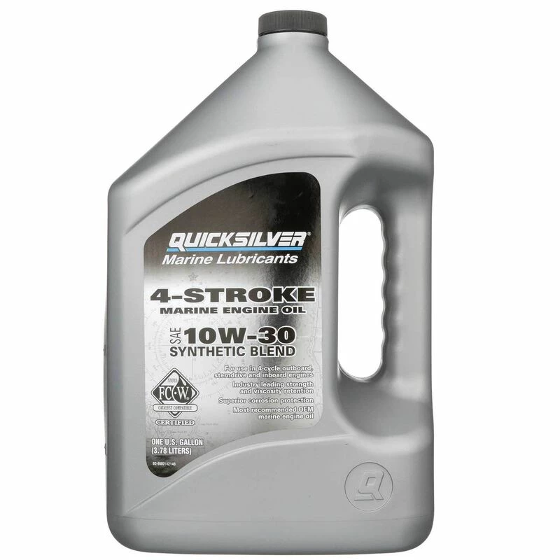 Four stroke synthetic blend oil 8M0142135 is recommended for use in all four stroke outboards to 150 hp, 3.4L V-6 outboards and 4.6L V-8 outboards. It is SAE 10W30 weight oil. Provides outstanding wear and corrosion protection to help extend engine life. See your owner’s manual or service manual for specific applications and instructions.