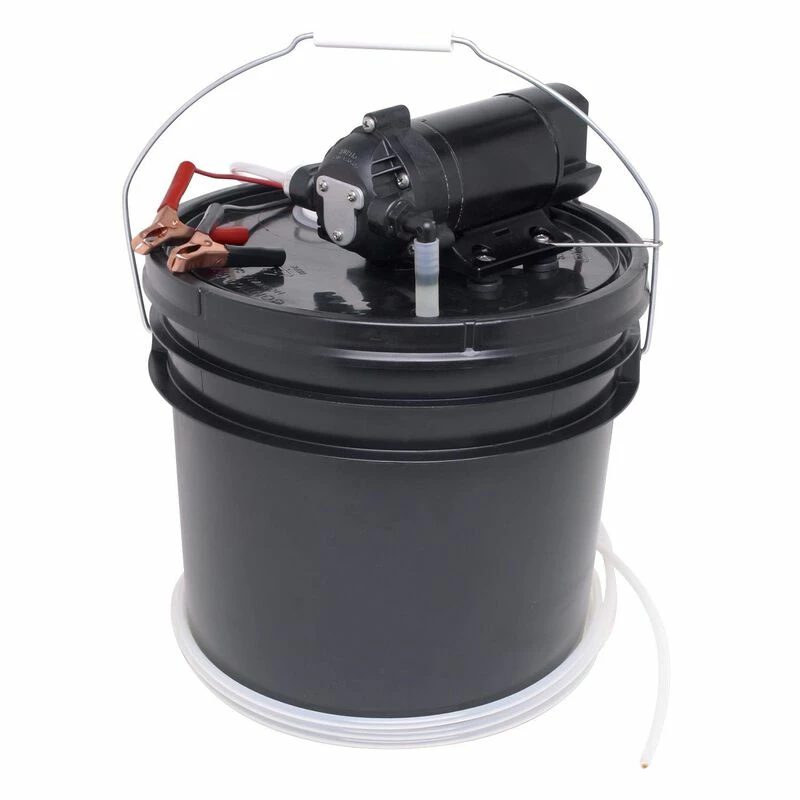 System includes a heavy-duty SHURflo three-chamber diaphragm pump with 8′ power cord and battery clips. Includes a 13 quart capacity oil storage container, dipstick probe and all necessary fittings to extract oil from your engine.